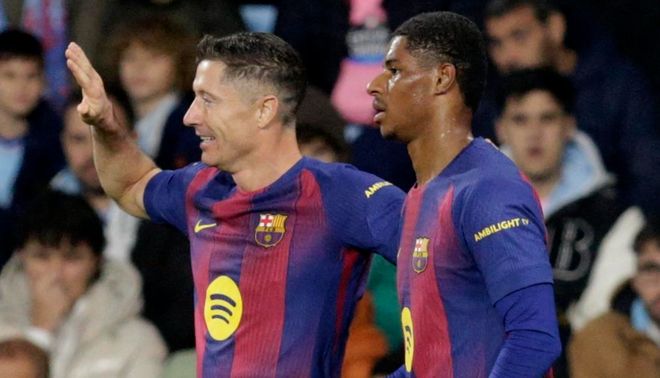 第24分钟,费尔明射门被挡出,拉什福德再射一脚,皮球击中立柱弹出,随后莱万多夫斯基小角度补射,被扑了出去。第37分钟,巴萨再次进球。拉什福德在左侧起球传中,莱万多夫斯基门前抢点射门打进。6分钟后,塞尔塔再次扳平。伊格莱西亚斯远射破门。半场补时阶段,亚马尔在禁区右侧推射破门。半场结束,巴萨3-2领先塞尔塔。