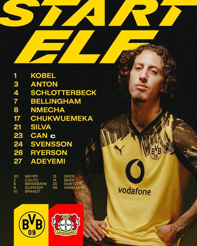 多特vs勒沃库森:阿德耶米领衔,小贝林厄姆、丘库埃梅卡出战